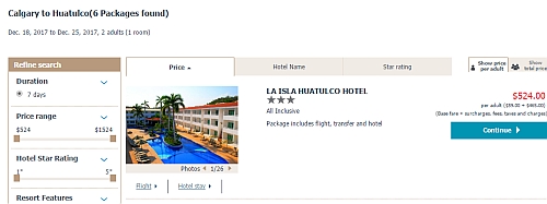 Update 12/13 - A 7 night all inclusive package from Calgary to La Isla Huatulco departing in December has become available for $524 CAD/person including taxes