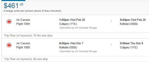 Update 10/3 - Air Canada Rouge has dropped the price of their non-stop flights from Calgary to Maui in March and April down to $441 CAD roundtrip including taxes