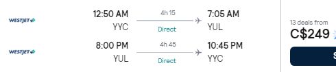 WestJet has dropped the price of their flights from Calgary to Montreal down to between $234 and $401 CAD roundtrip including taxes.