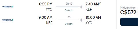 Google Flights: Calgary to Reykjavik, Iceland