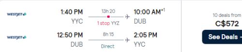 3. Search for a flight from Calgary (YYC) to Dublin, Ireland (DUB)