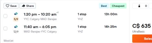 Google Flights: Calgary to Madrid, Spain