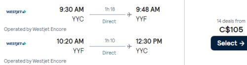 WestJet has dropped the price of their flights from Calgary to Penticton, BC down to between $97 and $221 CAD roundtrip including taxes.