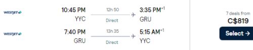 WestJet is offering introductory prices on their new flights from Calgary to Sao Paulo, Brazil for between $797 and $947 CAD roundtrip including taxes.
